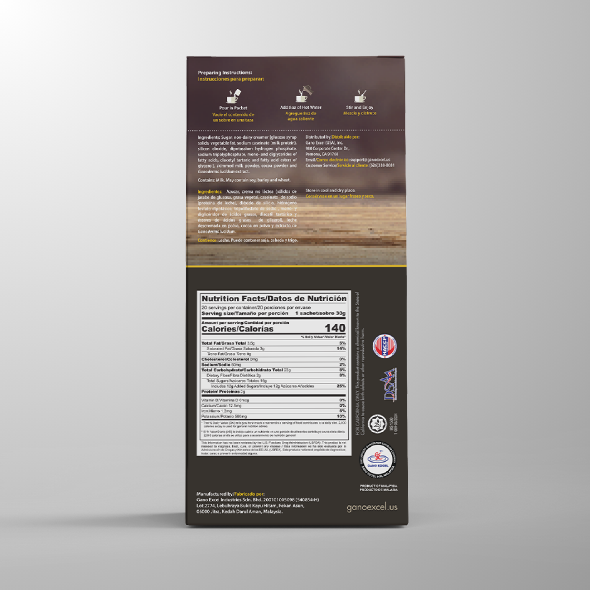 Ideal para momentos de relajación, esta mezcla seductora incluye crema no láctea, azúcar refinada y polvo de leche descremada, ofreciendo una textura cremosa y un sabor irresistible. Además, el Ganoderma aporta propiedades antioxidantes que ayudan al bienestar general, convirtiendo cada sorbo en un gesto de cuidado personal.